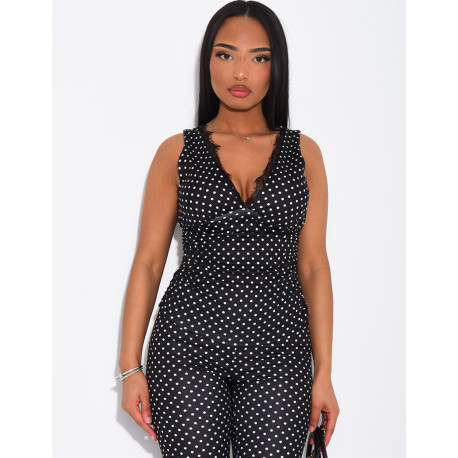 Débardeur décolleté à pois et dentelle