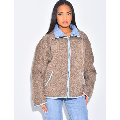 Veste en laine bouillie à bordures contrastantes