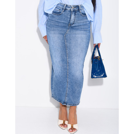 Jupe très longue en jeans délavé