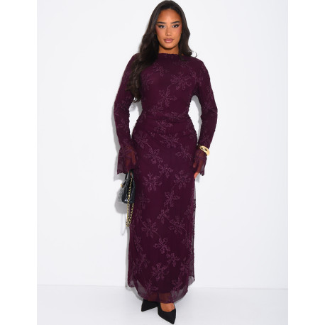 Robe longue en tulle doublé à motifs brodés