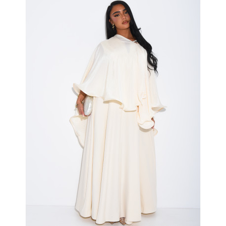 Ensemble robe sans manche évasée et cape plissée à broche