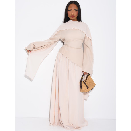 Ensemble jupe longue en mousseline et top asymétrique cintré + châle