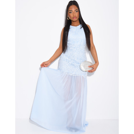 Robe maxi en dentelle & voile plissé sur le bas