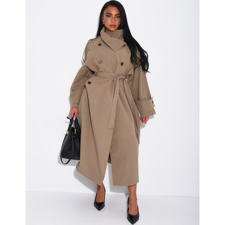 Trench long et oversize texturé à ceinture à la taille