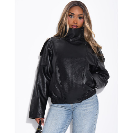 Veste oversize en similicuir & col montant