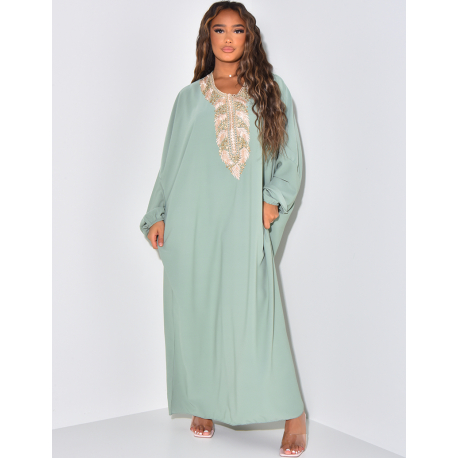 Abaya with golden embroidery & long sleeves