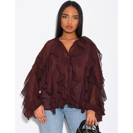 Transparent voile blouse with ruffles