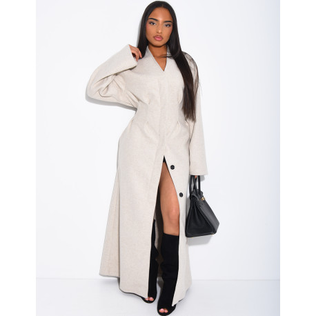 Long, thick felt coat with a fitted waist