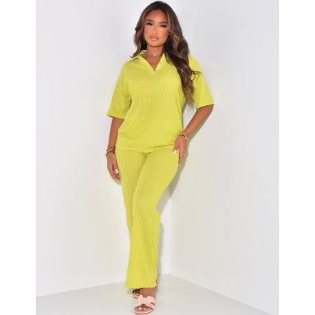 Oversized polo shirt and straight-leg trousers set