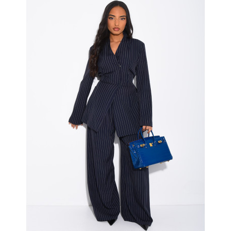 Striped set with fitted high-neck blazer and straight-leg pants