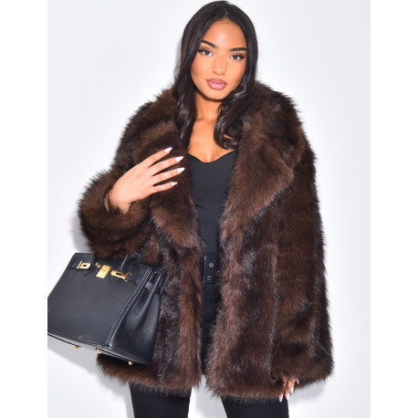 Mid-length faux fur coat