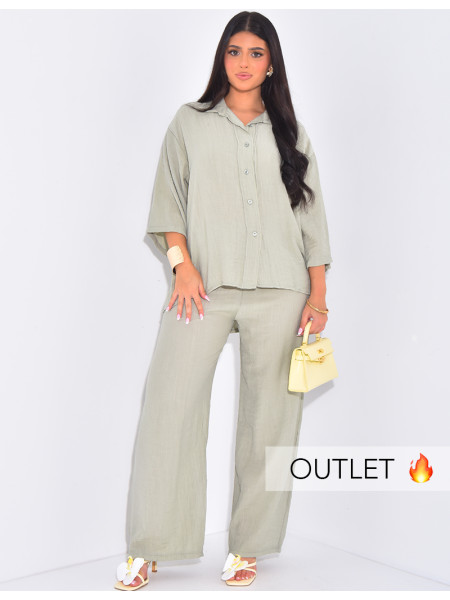Straight-leg pants and textured 3/4-sleeve shirt set