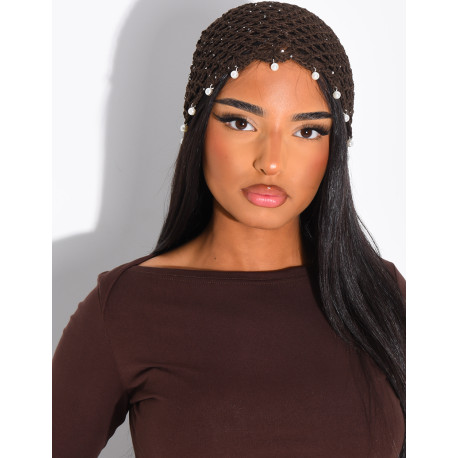 Crocheted beanie with beads