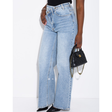 Wide-leg jeans with a double-breasted placket and rhinestones