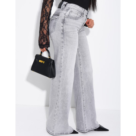 Low-rise wide-leg jeans with flap pockets