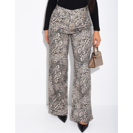 Straight-leg jeans with a leopard print