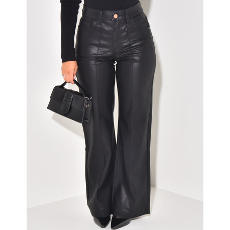 Imitation leather straight-leg trousers