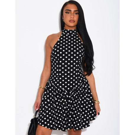 Short, ruffled, polka-dot backless dress