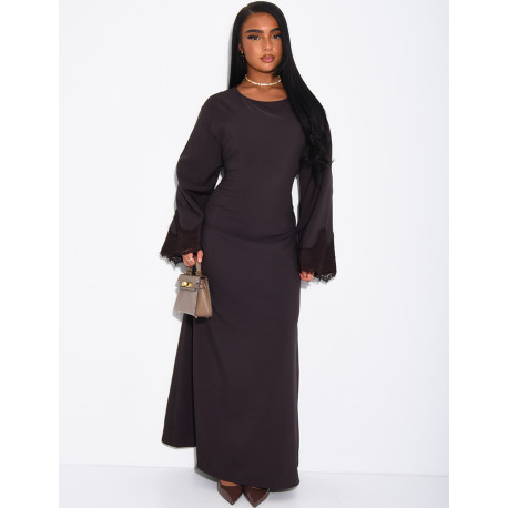 Long dress with a tie-back detail and lace trim