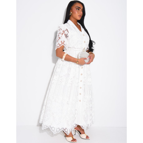 Shiny satin dress with cape and brooch at the waist