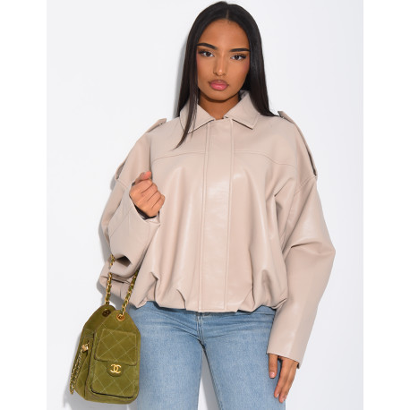 Flared faux leather bomber jackets