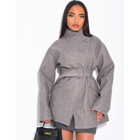 Mid-length felt coat with belt